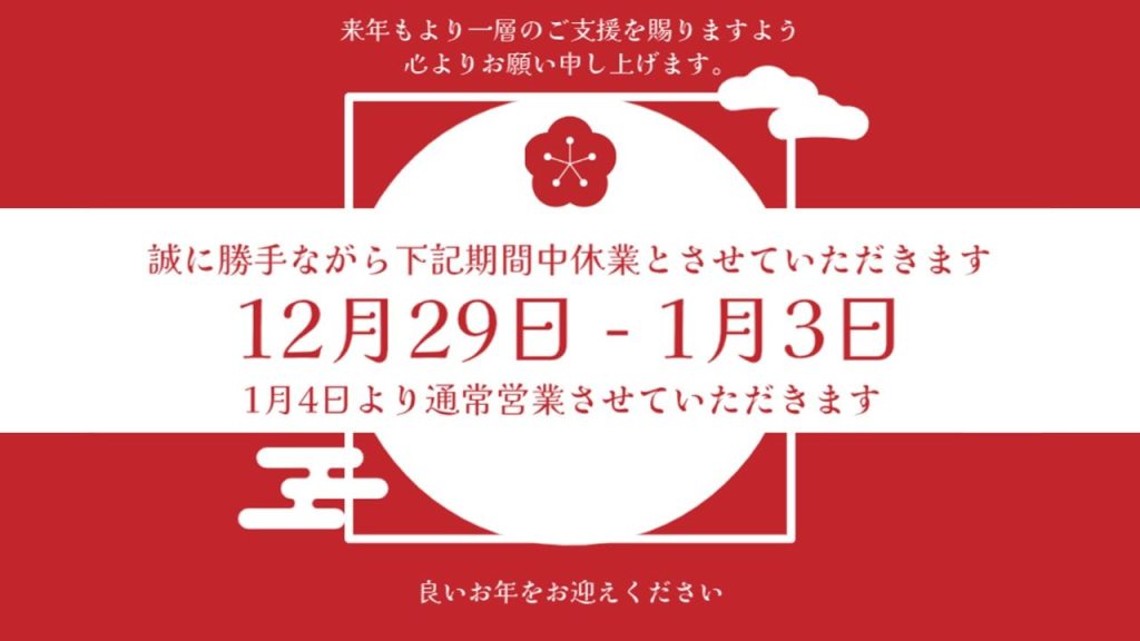 年末年始休業のお知らせ