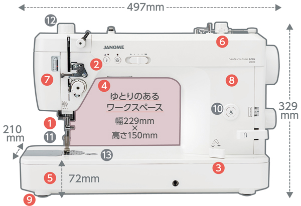 ナチュラルな色合いから ecru(エクリュ/生成り)と名付けられ、信頼の縫い品質とともにソーイングスペースを柔らかく彩ります。